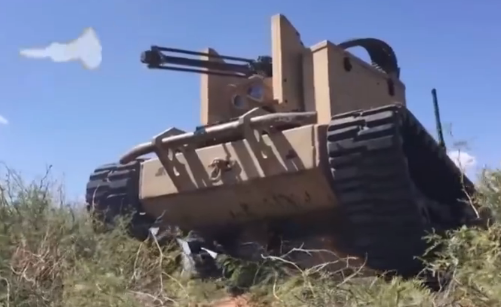 實(shí)際上它是一種無(wú)人地面戰(zhàn)車,可以配備機(jī)關(guān)槍或槍榴彈發(fā)射器。