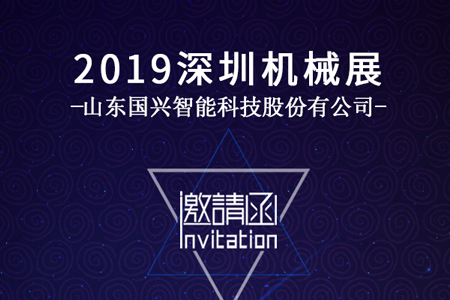 山東國興智能科技股份有限公司將于2019年3月28號至3月31號攜公司全新產(chǎn)品參加2019深圳機(jī)械展,地點(diǎn)是深圳會展中心,展位號:8館8B20,歡迎各位領(lǐng)導(dǎo)、朋友蒞臨參觀指導(dǎo)。