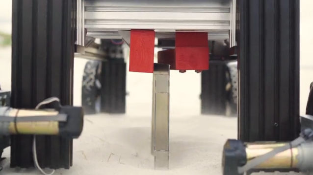 被稱為板樁的互鎖金屬板可以防止土壤在降雨后松動,它們可以作為斜坡上的擋土墻,或執(zhí)行其他功能。然而,安裝這種板樁是一個費(fèi)力的過程,這就是科學(xué)家們創(chuàng)造了一個機(jī)器人來完成這項(xiàng)工作的原因。