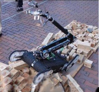 這種履帶式機器人可進入廢墟內(nèi)部,利用自身攜帶的紅外攝像機、聲音傳感器將廢墟內(nèi)部的圖像、語音信息實時傳回后方控制臺,供救援人員快速確定幸存者的位置及周圍環(huán)境。同時,還能為實施救援提供救援通道的信息。