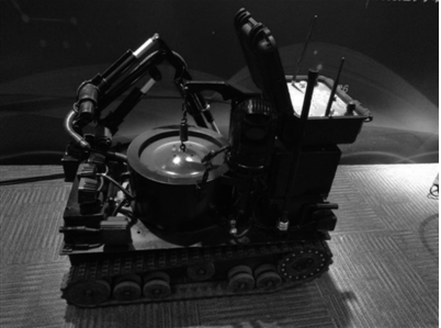一個小家伙神態(tài)自若地在幾十雙眼睛的注視下,靈巧地滾動著特制的履帶穿過會場稍顯狹窄的通道走上臺來,它伸展出自己的機械臂膀,似乎有些靦腆地接過一位央視帥哥獻上的百合花,卻又毫不遲疑地轉(zhuǎn)身將手中的鮮花獻給了它面前的美女,即刻引來一陣笑聲。