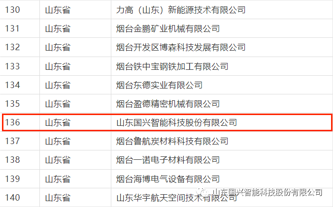 近日,工業(yè)和信息化部組織的第四批專精特新“小巨人”企業(yè)名單和第一批專精特新“小巨人”復(fù)核通過企業(yè)名單公示,山東國興智能科技股份有限公司榜上有名。