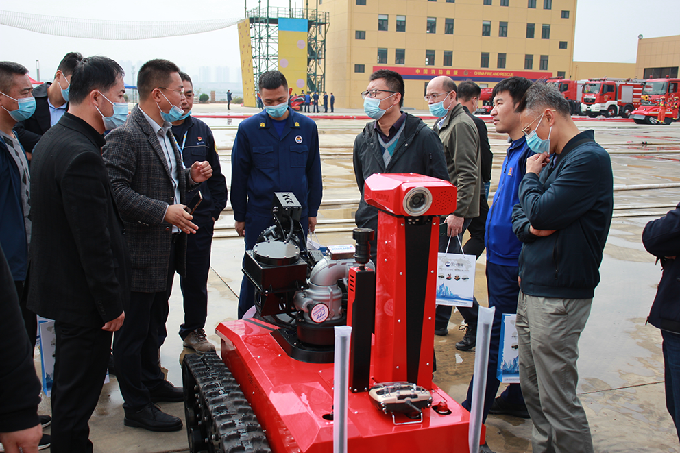 在活動(dòng)現(xiàn)場(chǎng),國(guó)興智能負(fù)責(zé)人向參會(huì)領(lǐng)導(dǎo)詳細(xì)介紹了公司在消防機(jī)器人領(lǐng)域產(chǎn)品創(chuàng)新、生產(chǎn)狀況、產(chǎn)品特點(diǎn)以及產(chǎn)品應(yīng)用場(chǎng)景多元化建設(shè)等。隨后,現(xiàn)場(chǎng)展示了四驅(qū)柴油滅火機(jī)器人爬坡越障、水炮打水等性能;舉升排煙消防機(jī)器人的排煙風(fēng)量、水炮打水、舉升高度等性能,通過(guò)動(dòng)態(tài)演示,充分展示了產(chǎn)品的機(jī)動(dòng)性強(qiáng)、水炮流量大射程遠(yuǎn)、通過(guò)性強(qiáng)等方面優(yōu)勢(shì),也展現(xiàn)出國(guó)興智能在產(chǎn)品技術(shù)研發(fā)方面的優(yōu)勢(shì)。