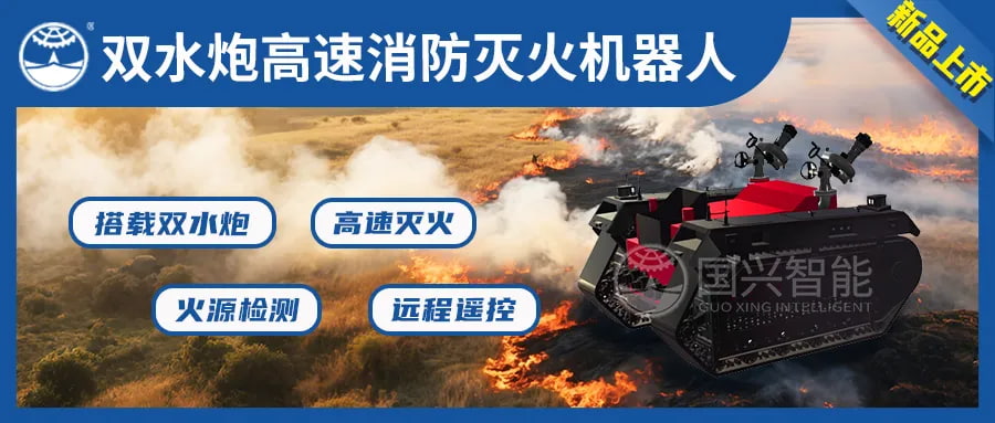 為提高滅火效率,兼顧復(fù)雜火災(zāi)撲救,2025年國(guó)興智能推出全新產(chǎn)品——雙水炮高速消防滅火機(jī)器人。此款產(chǎn)品搭載雙水炮,可以在同一位置向不同方向遙控滅火,是國(guó)興智能在常規(guī)單炮消防滅火機(jī)器人的基礎(chǔ)上實(shí)現(xiàn)的又一突破性創(chuàng)新。