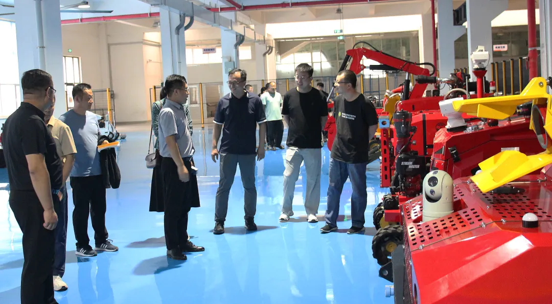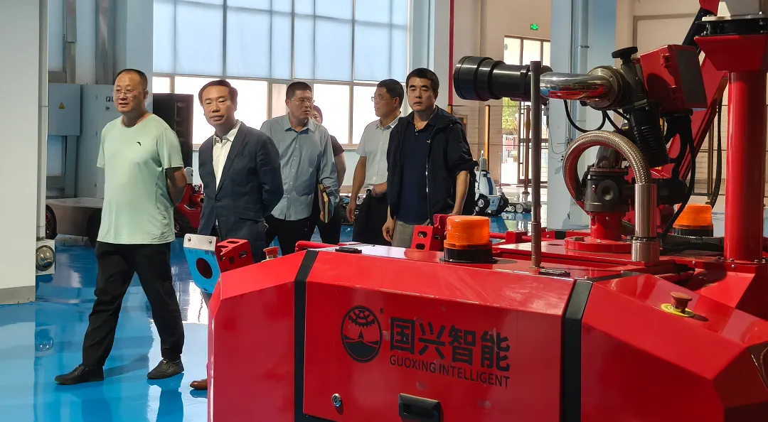 一行人參觀了柴油機驅(qū)動快速反應(yīng)滅火機器人、防爆消防滅火偵察機器人、水龍王系列排澇機器人、舉升排煙消防機器人等產(chǎn)品,詳細了解了國興智能近年來在消防機器人領(lǐng)域產(chǎn)品創(chuàng)新、生產(chǎn)狀況、產(chǎn)品特點以及產(chǎn)品應(yīng)用場景多元化建設(shè)等,調(diào)研團隊對國興智能在人工智能領(lǐng)域所取得成績給予了高度認可。
