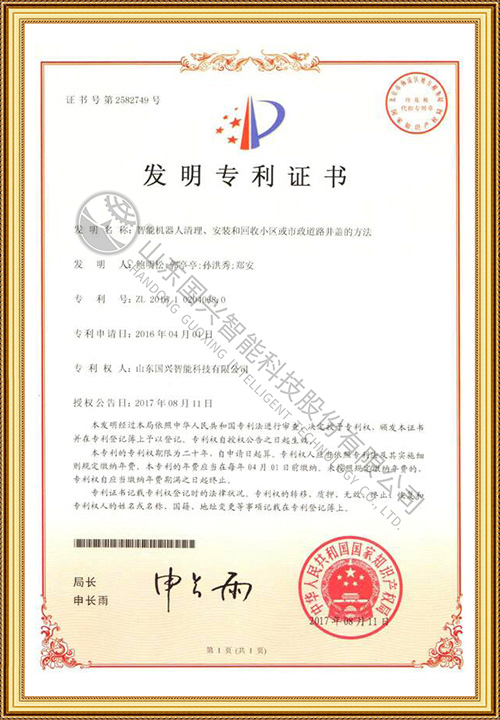 發(fā)明專利1智能機器人清理、安裝和回收小區(qū)或市政道路井蓋的方法
