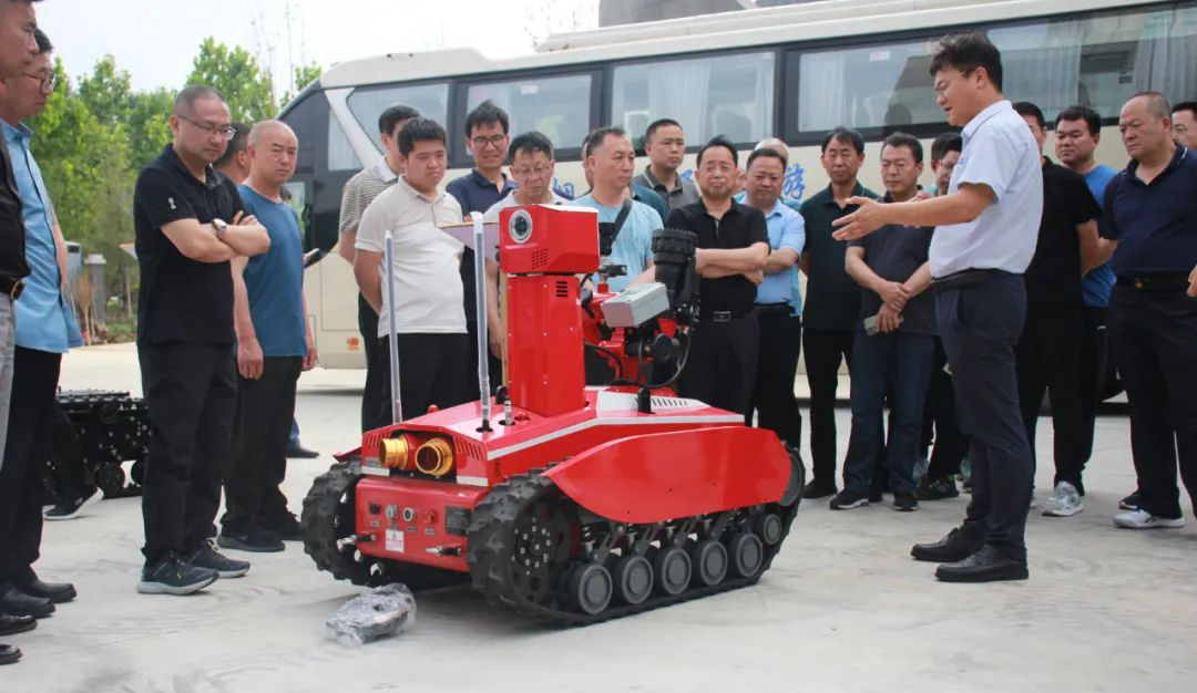 在國興智能鮑明松董事長陪同下,企業(yè)領(lǐng)導(dǎo)首先參觀了國興智能的礦用消防滅火偵察機(jī)器人、防爆消防滅火偵察機(jī)器人、輪式防爆巡檢機(jī)器人、四驅(qū)燃油消防滅火機(jī)器人、舉升排煙消防機(jī)器人等礦用消防機(jī)器人系列產(chǎn)品的展示,詳細(xì)了解了國興智能近年來在煤礦機(jī)器人領(lǐng)域產(chǎn)品創(chuàng)新、生產(chǎn)狀況、產(chǎn)品特點(diǎn)以及產(chǎn)品應(yīng)用場景多元化建設(shè)等,得到到訪煤礦企業(yè)領(lǐng)導(dǎo)的一致好評。