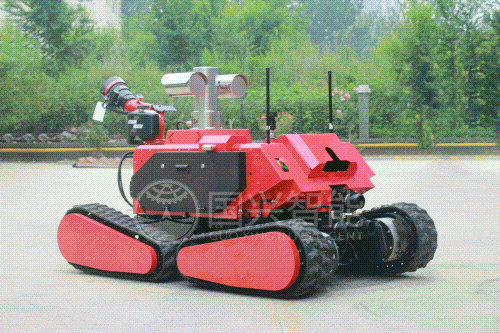 由直流電機(jī)提供動(dòng)力,采用全地形履帶底盤,機(jī)動(dòng)靈活,可原地轉(zhuǎn)向,爬坡、爬樓梯,越野能力強(qiáng);配備的大流量消防水炮,射程遠(yuǎn),操控靈活,部署方便。