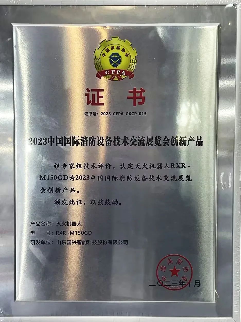 10日上午,國興智能消防滅火機(jī)器人RXR-M150GD 榮獲“2023中國國際消防設(shè)備技術(shù)交流展覽會創(chuàng)新產(chǎn)品”。獲此殊榮,激勵著國興智能在產(chǎn)品創(chuàng)新上再接再厲,在技術(shù)創(chuàng)新上更添信心。中國國際消防展是開放融合、百花齊放的平臺,交流與進(jìn)步是國興智能一直以來的理念。